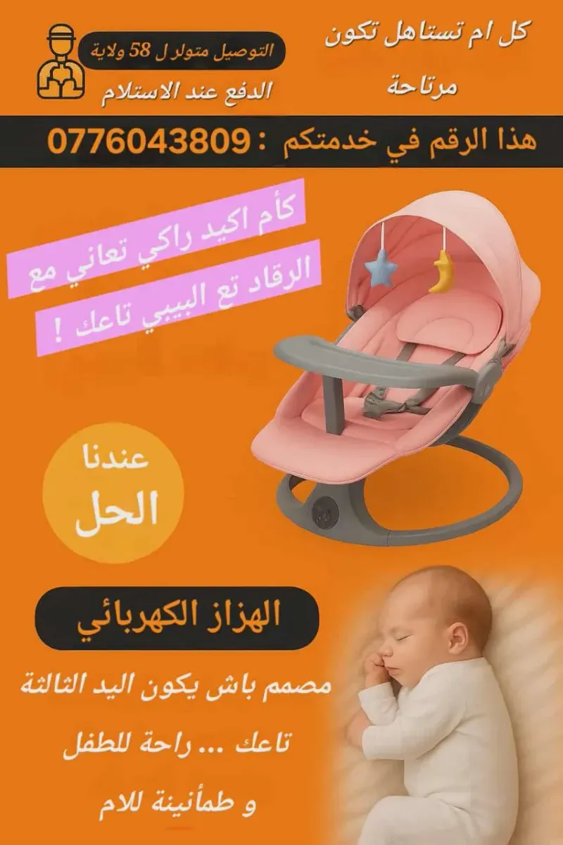 المقعد الهزاز الذكي للرضع 👶 … تصميم مبتكر يجمع بين الراحة والأمان 🥰 ( زوج ملاين و ستة مئة )