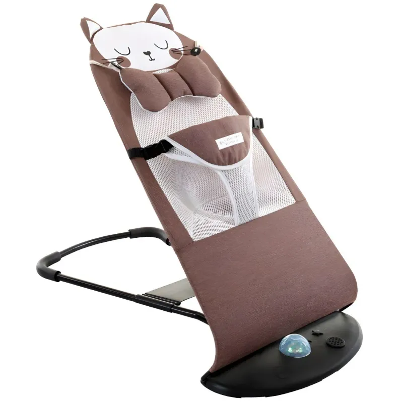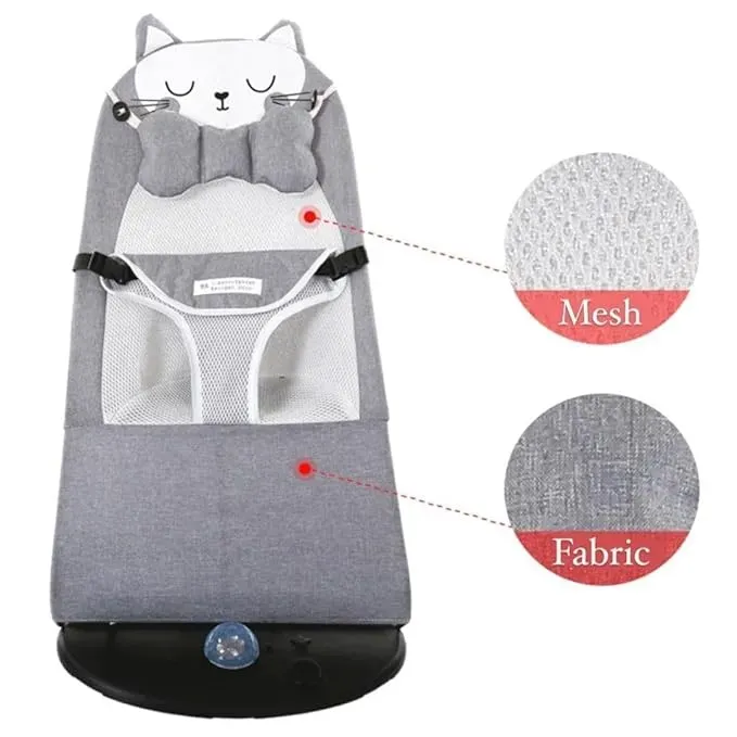 يهتز بلطف ليمنح إحساساً بالهدوء ويساعد الطفل على النوم بسرعة، كما يمكن استخدامه أثناء الأكل أو اللعب بفضل تصميمه العملي القابل للطي والنقل بسهولة.