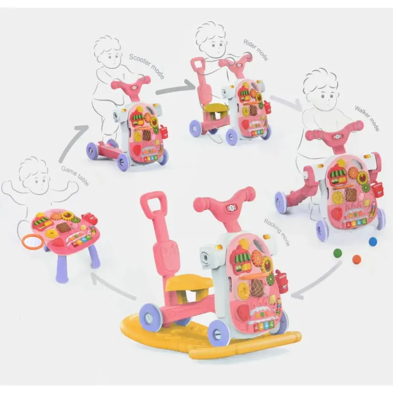 يمكن تحويلها بسهولة إلى سكوتر، دراجة صغيرة، مركز أنشطة، طاولة لعب تفاعلية، أو مشّاية تقليدية.