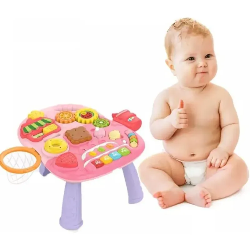 مزودة بطاولة مليئة بالألعاب التعليمية والألوان والألحان، تساعد على تحفيز الحواس وتنمية المهارات الحركية الدقيقة لطفلك.